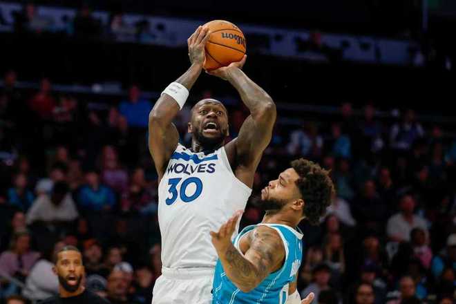 森林狼大勝黃蜂:蘭德?tīng)?0+7連場(chǎng)30+ 布里奇斯30+8三球18+7+8